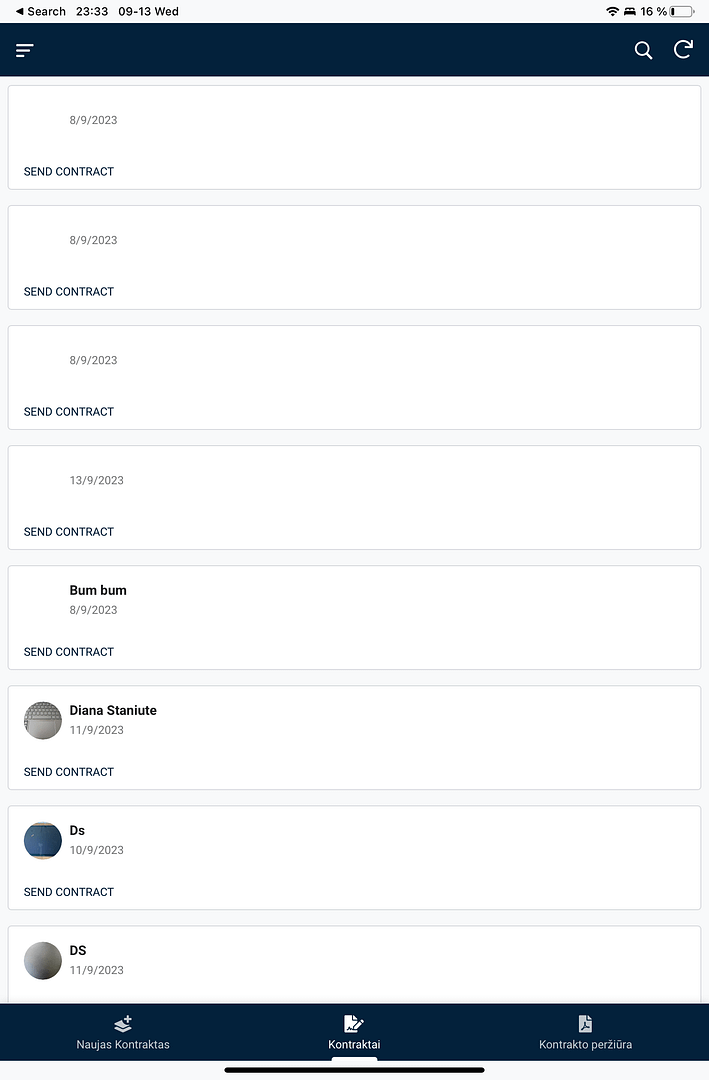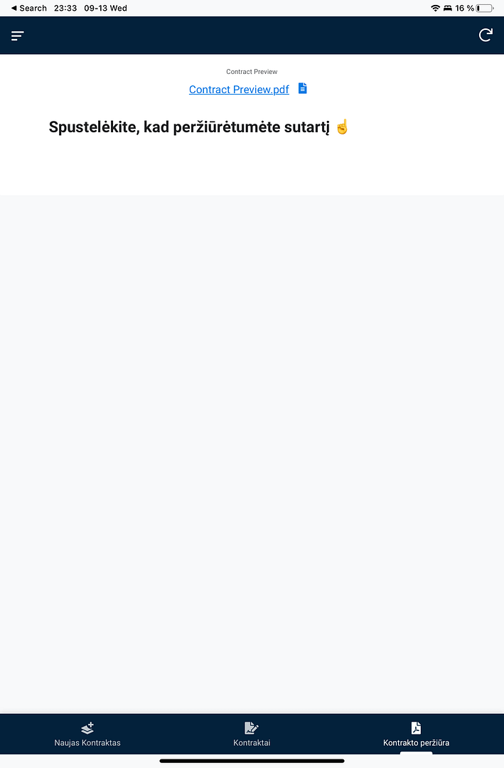 Sukurkite naują kontraktą planšetėje, jis automatiškai susigeneruos ir duokite klientui pasirašyti ranka ar su pieštuku.